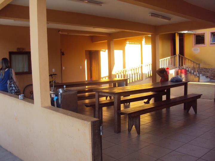 Nessa viagem deveríamos escolher um espaço coberto para uma intervenção em novembro.O espaço que escolhemos é o pátio da escola da cidade.Embora pareça uma escolha óbvia, a escola não possui grandes indicações e a sua arquitetura comum a todas as outras residências fazem com que ela passe despercebida.
